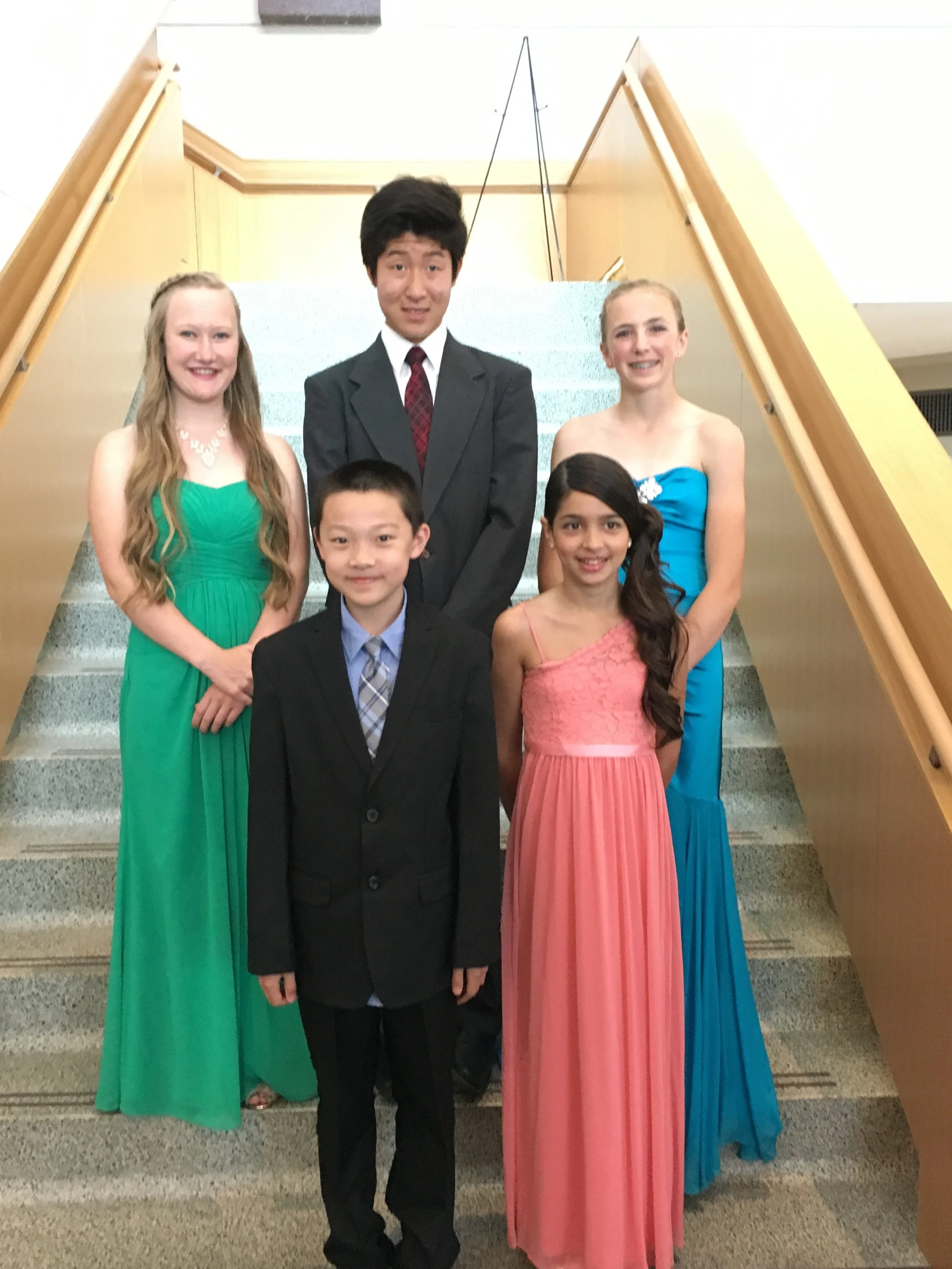 2018 MMTA Contest Winners Julia T. (Maple Grove), Marissa B. (Maple Grove), Owen L. (Maple Grove), Alyssa I. (Maple Grove), Holly V. (Hanover), Abbie V. (Hanover). Honors Concert, Convention Center, Minneapolis.